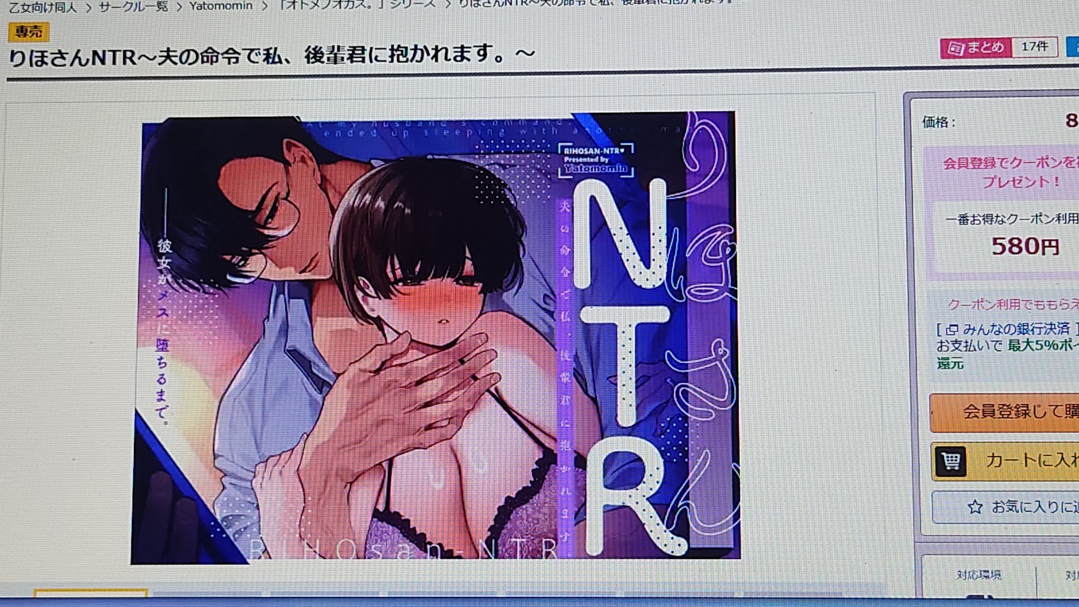 山本ともみつ先生の大ヒット作品「りほさんNTR~夫の命令で私、後輩君に抱かれます。~」はDL.siteのみで配信されています。